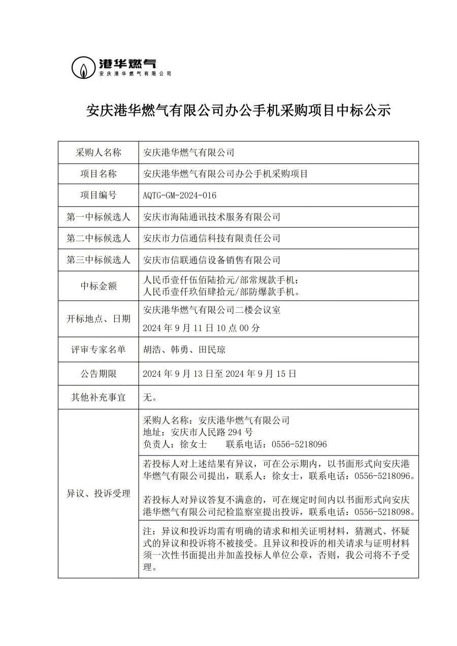 安慶港華燃?xì)庥邢薰巨k公手機(jī)采購(gòu)項(xiàng)目中標(biāo)公示